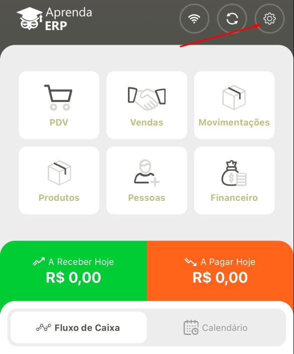 Segundo passo é configurar o Aprenda ERP com a sua impressora. Acesse as configurações dentro do aplicativo Aprenda ERP.