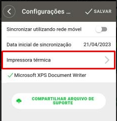 Em seguida, dirija-se à Impressora térmica, como na imagem abaixo.