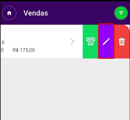 Dessa forma, o Orçamentoestará salvo no Aprenda ERP, que irá sincronizar automaticamente e também irá aparecer na sua conta do Sistema ERP ou Offline, onde poderá ser aprovadoe faturado. Você também poderá aprová-lo através do Aprenda ERP, para isto, na listagem, arraste o orçamento para o lado e clique no ícone de lápis para Editar.