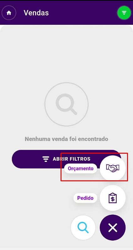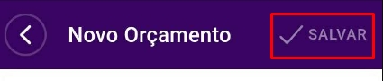 Então, para adicionar umNovo Orçamento, clique no ícone de+, localizado no canto inferior direito do smartphone. Nesse momento, escolha a opção Orçamento.
