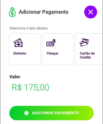 Feito isso, o sistema apresentará uma nova tela, onde você deverá selecionar a forma de pagamento e clicar em Adicionar Pagamento.