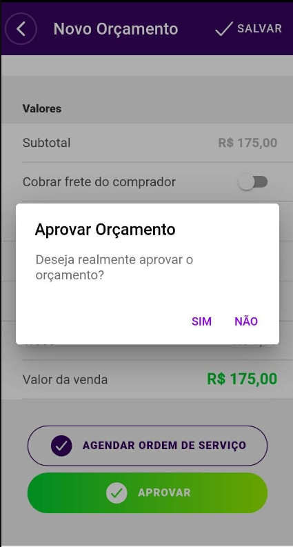 Por fim, no modal de Aprovar Orçamento, clique em Sim.