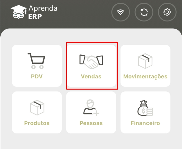 Para realizar este processo, acesse seu aplicativo Aprenda ERP e localize o ícone Vendas.