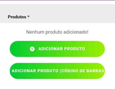 Adicionar produto: clique nesta opção para selecionar os produtos que deseja incluir nesta negociação, e se abrirá a listagem de todos os produtos cadastrados no seu sistema; Adicionar produto (código de barras): nesta opção se abrirá a câmera do smartphone para fazer a leitura do código de barras do produto. Para isso é necessário ter informado o código EAN (código de barras) dentro do cadastro do produto, na aba Fiscal.