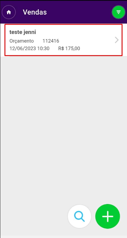 Após localizar a venda desejada, clique nas descrições para o sistema lhe direcione a uma segunda tela com mais informações, na qual será possível imprimir o recibo.