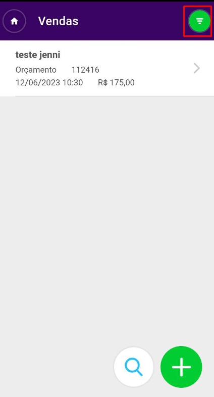 Em seguida, serão apresentadas todas as vendas realizadas, é preciso que localize a venda no qual deseja imprimir o recibo de venda, para isso pode-se utilizar o recursoFiltrar Vendas, localizado no canto superior de sua tela.