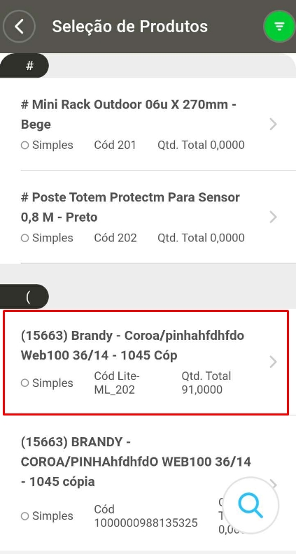 Em seguida, busque pelo produto e clique nele para realizar a movimentação.