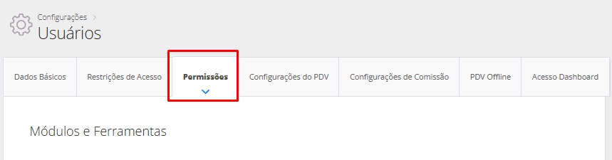 Clique na aba Permissões