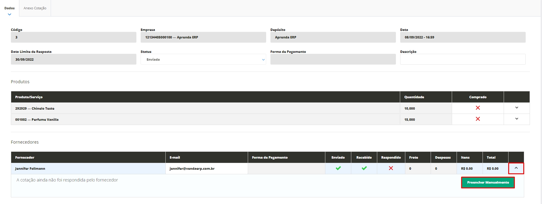 Enviou uma cotação aos seus fornecedores em busca do melhor preço, mas o fornecedor não está respondendo via e-mail? Não tem problema! Você pode entrar em contato com seu fornecedor, solicitar os valores dos produtos a ele, e preencher você mesmo!
