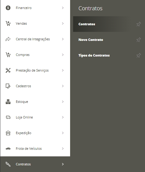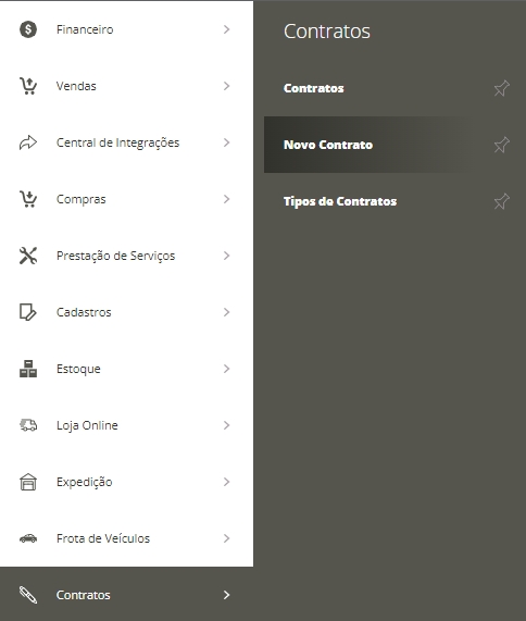 Agora você já poderá criar um novo contrato. Para isso, acesse o menu lateral Contratos e clique em Novo contrato.