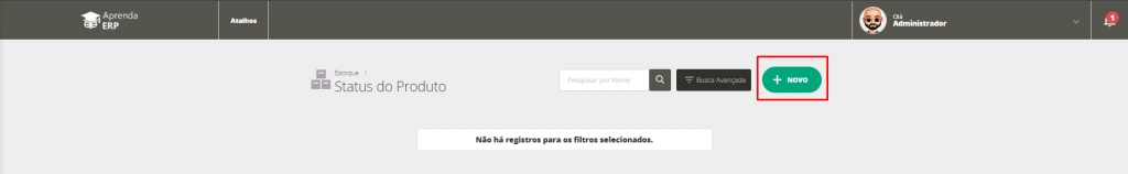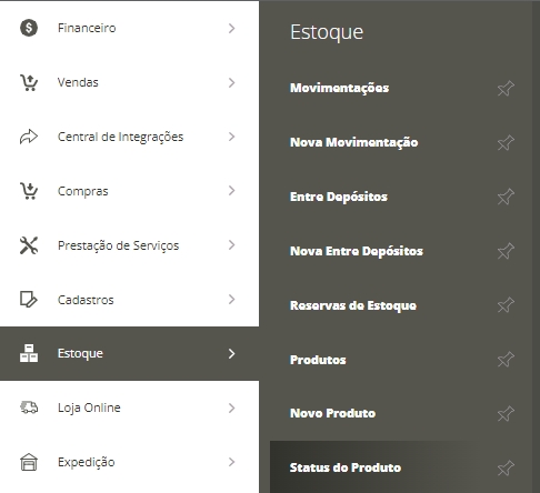 Mas para que seja possível utilizar o status de produto nas telas do sistema, primeiramente é necessário cadastrá-lo no sistema. Para isso, acesse o menu lateral Estoque, submenu Status do Produto.