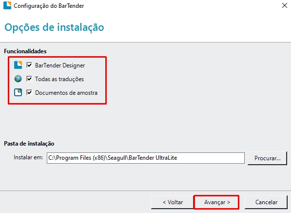 Em seguida, marque os Checkbox e avance novamente.