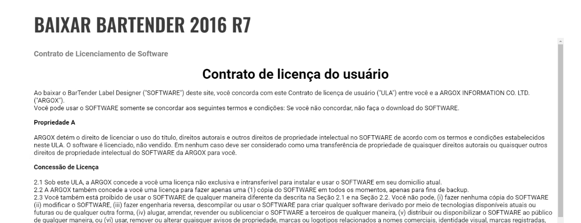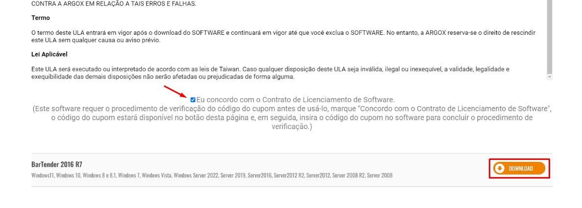 Após ler o contrato, basta descer a tela e clicar no checkbox Eu concordo com o Contrato de Licenciamento de Software.Em seguida, novamente clicar no ícone de Download.