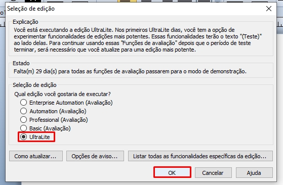 Agora, marque a opção UltraLitee em seguida OK.