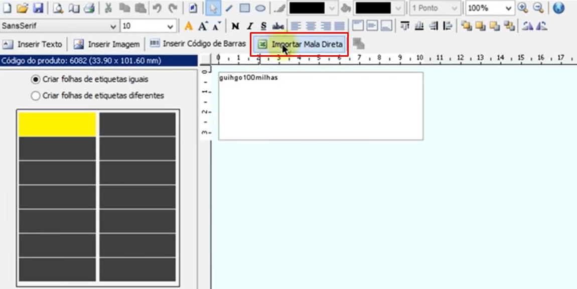 E pronto, basta seguir o fluxo de clicar na opção de importar mala direta, selecionar o espaço desejado na etiqueta teste e informar qual coluna deve ocupar o espaço selecionado com a sua respectiva informação. Por fim finalize a impressão de suas etiquetas, simples, prático e otimizado.