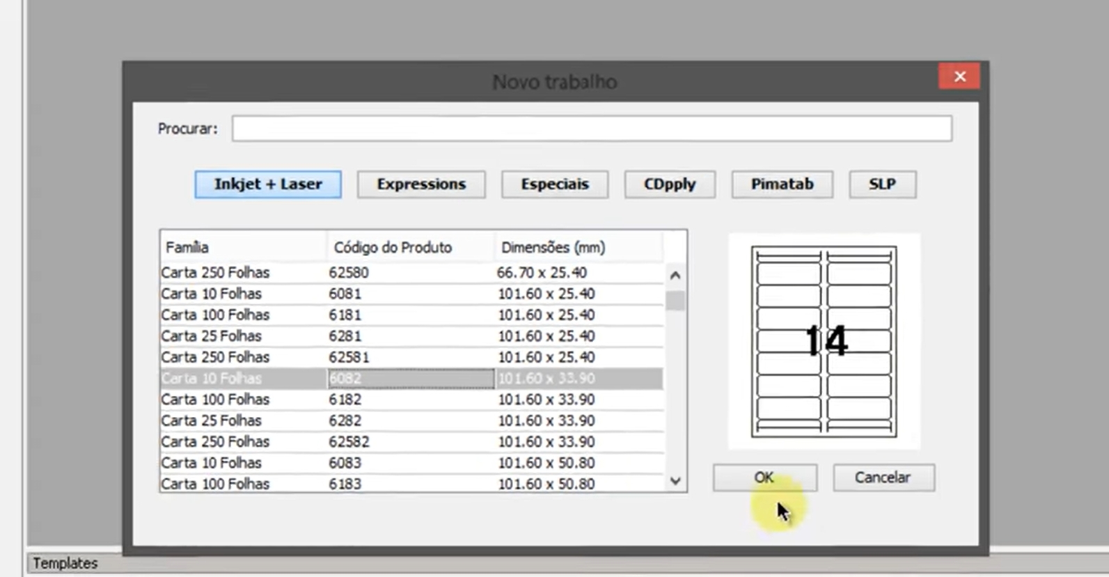 Agora, com a planilha baixada será necessário FAZER MALA DIRETA com PIMACO importando do EXCEL, para iniciar acesse o Pimaco e seleciona o formato de sua etiqueta.