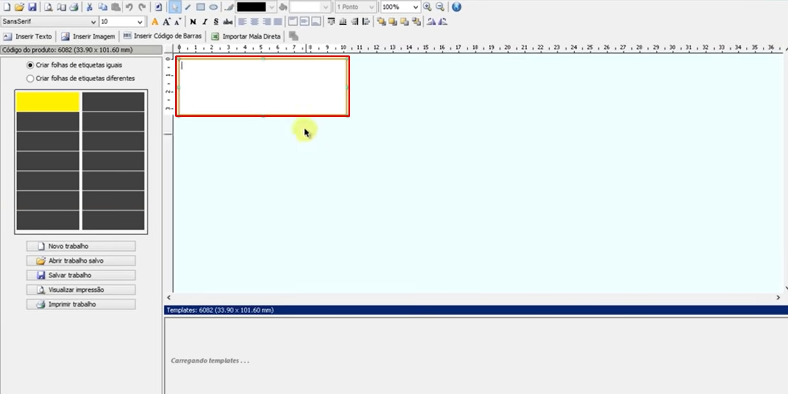 Após selecionar, destaque na etiqueta teste a proporção na qual a informação selecionada a seguir irá ser apresentada na impressão.
