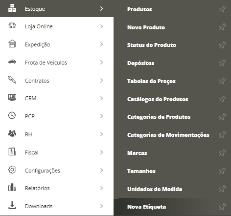 Para iniciarmos, será necessário acessar o menu lateral Estoque, submenu Nova Etiqueta.