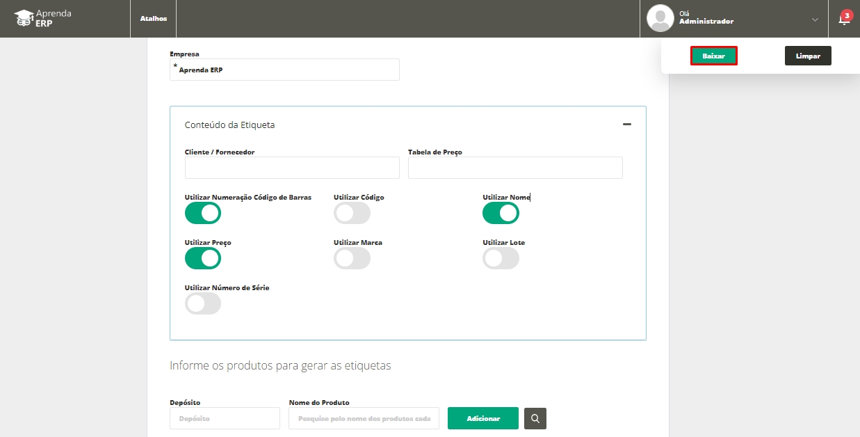 - 2. Após isso, preencha os campos do "Conteúdo da Etiqueta".