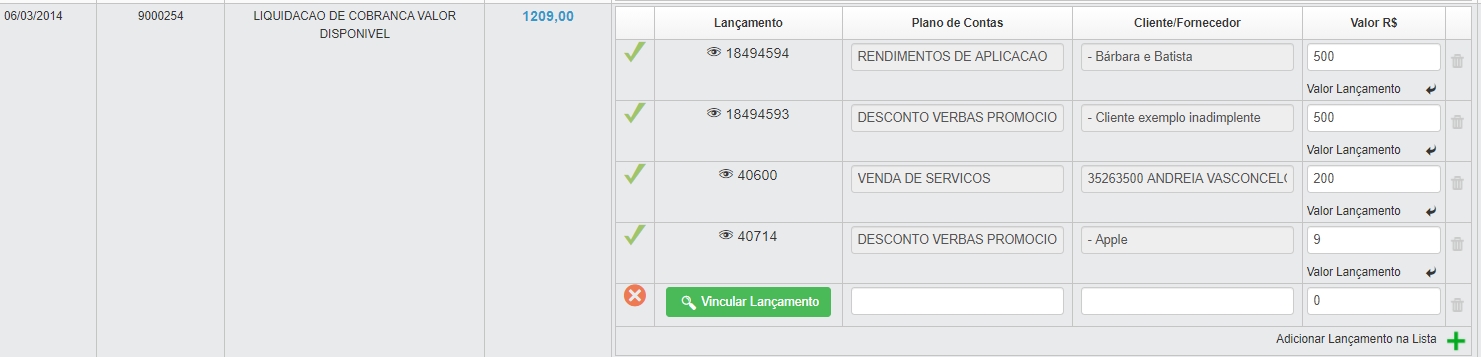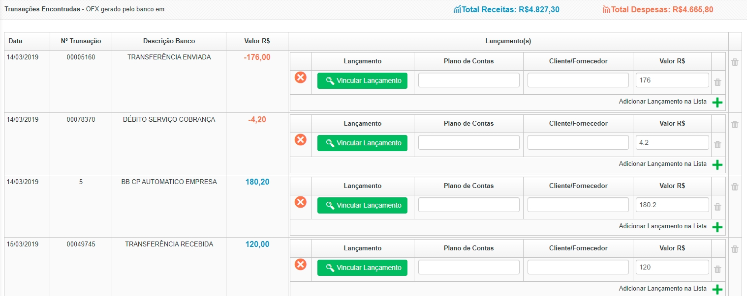 Com todos os lançamentos vinculados, clique em Salvar, para que o sistema registre essas transações no seu financeiro.