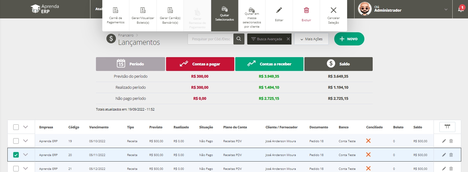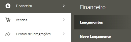 Com essa configuração devidamente realizada, já será possível acessar o menu lateral Financeiro, submenu Lançamentos.