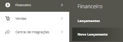 Acesse o menu lateral Financeiro,submenu Novo Lançamento.