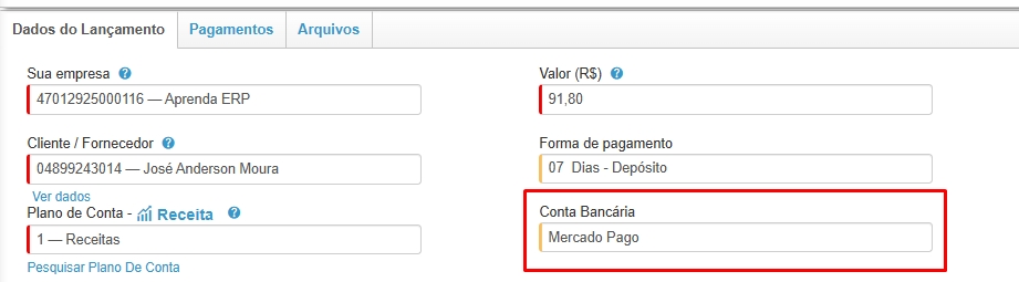 Para utilização do Link de Pagamento Integração, é necessária que a conta bancária seja do Mercado Pago. Devido que sua configuração dentro do sistema é por integração.