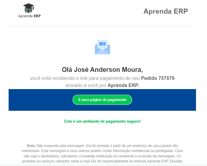 Após clicar em Gerar Link de pagamento, o mesmo será enviado por e-mail junto ao seu cliente.