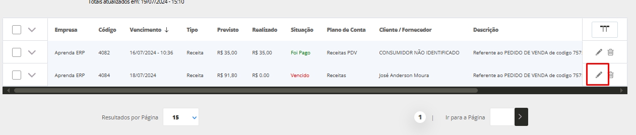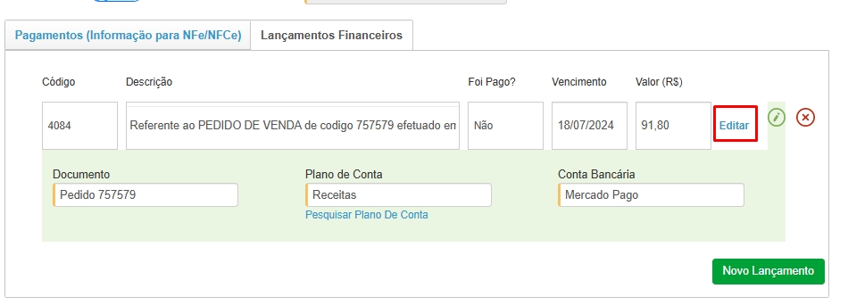 Então será direcionado a tela de edição do lançamento financeiro.