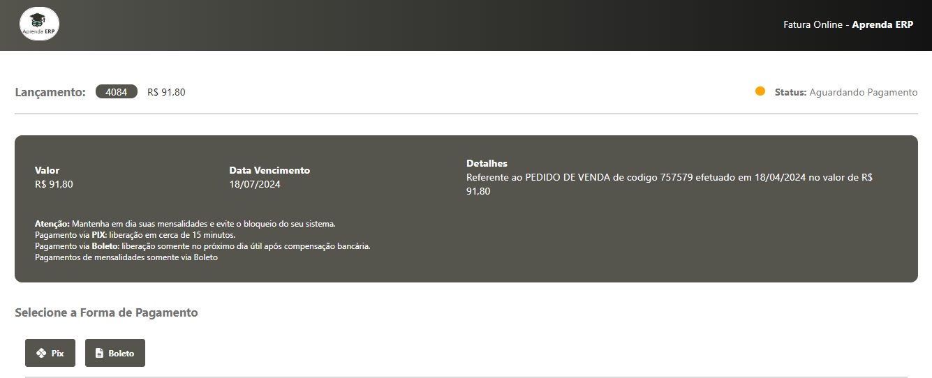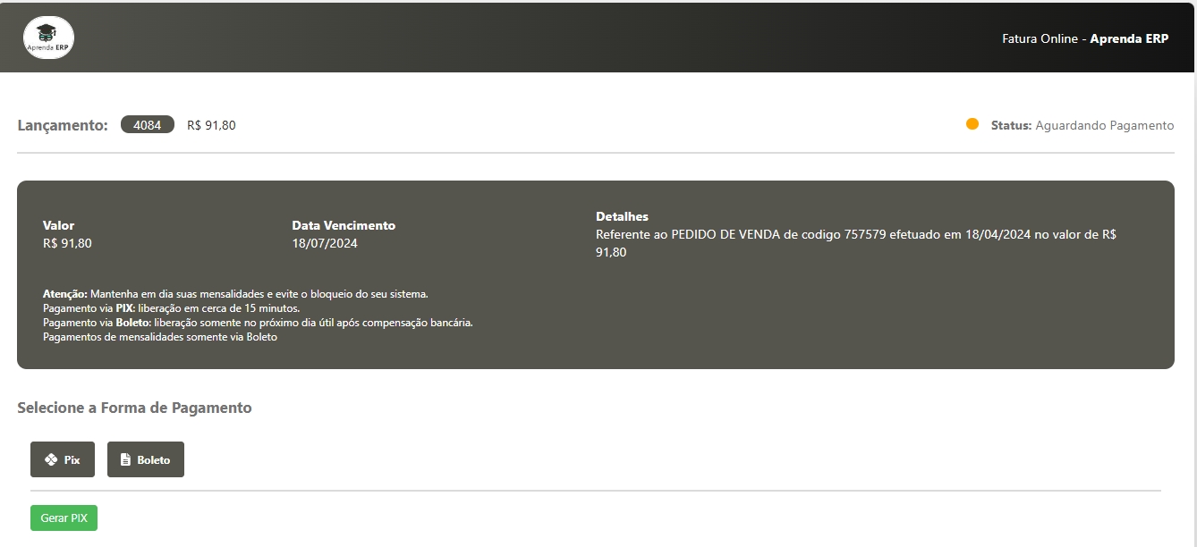 Desta forma, é possível estar enviando o link de pagamento dos valores em abertos aos seus clientes, facilitando ainda mais a forma de cobrança.
