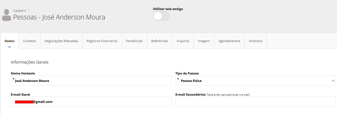 Para visualizar a informação, acesse Menu Lateral Cadastrosem seguida Submenu Pessoase edite o cadastro.