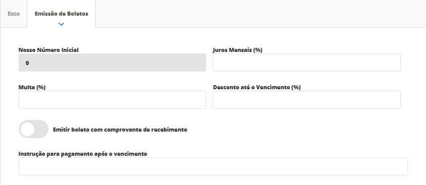 Com a opção Habilitar Emissão de Boletos marcada, você deverá adicionar outras informações na aba Emissão de Boletos.