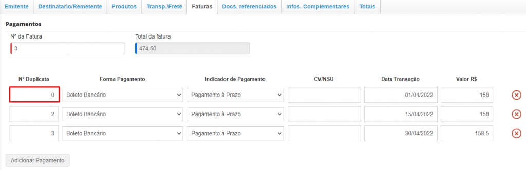 Agora, você precisará apenas informar um número correto para a duplicata no campo N° Duplicata.