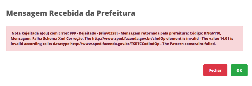 O erro retornado está ligado ao códigos indicadores das operações de consumo (cIndOp), de acordo com o art. 11 da Lei Complementar Nº 214, de 16 de janeiro de 2025.