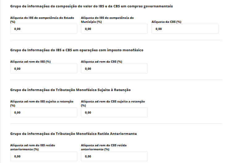 Alíquota da CBS (%): percentual da CBS aplicável à compra governamental.