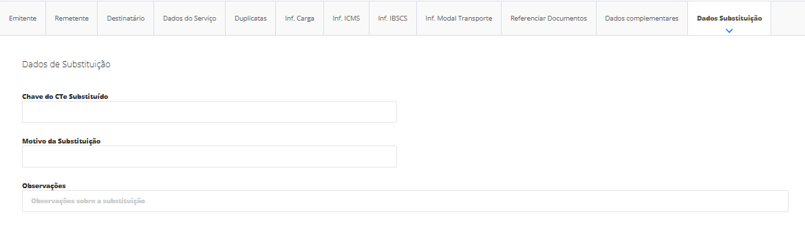 Seção utilizada exclusivamente quando o CT-e for do tipo Substituto.