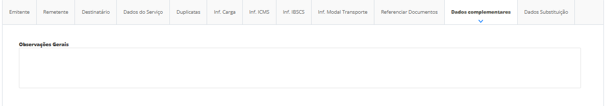 Por fim, a aba Dados complementares será utilizada para preenchimento de informações gerais ou até fiscais, caso houver necessidade.