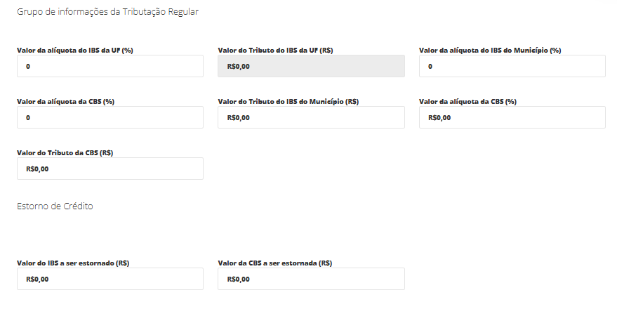 Valor do IBS a ser Estornado (R$): Valor do crédito de IBS que deverá ser estornado.