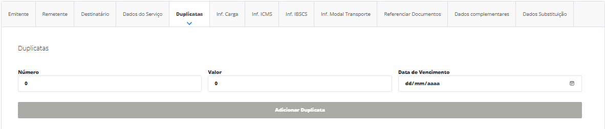Por fim, clique em Adicionar Duplicatas e cadastre novas informações, se for necessário.
