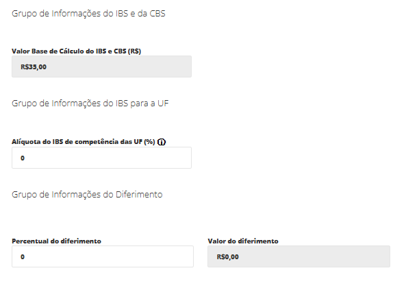 Valor do Diferimento do IBS para o Município (R$): Valor monetário correspondente ao percentual de diferimento informado.