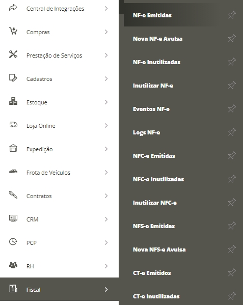 Para realizar este procedimento, acesse o menu lateral Fiscal, submenu NF-e Emitidas.