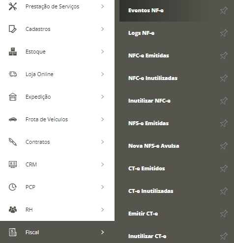Primeiramente, acesse o menu lateral Fiscal, submenu Eventos NF-e.