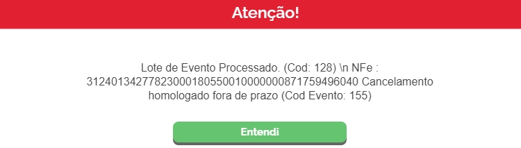 Então sua nota será cancelada perante SEFAZ fora do prazo de cancelamento.