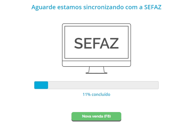 A seguir, o sistema informará que está sincronizando com a SEFAZ para o envio da NFC-e.