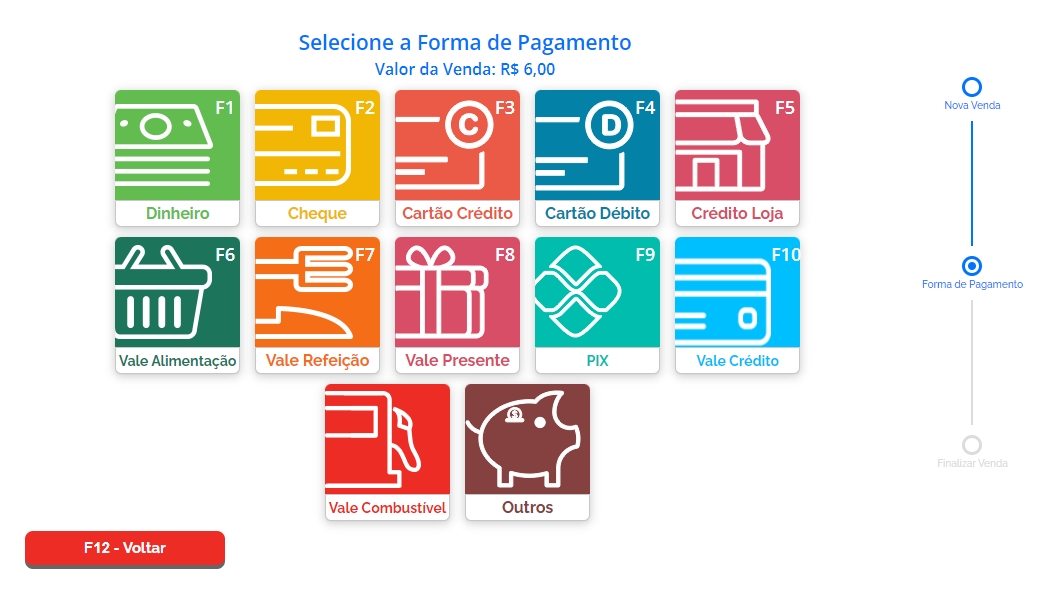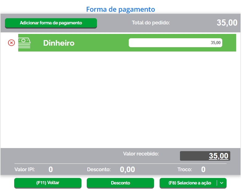 Na sequência, selecione uma forma de pagamento para a venda.