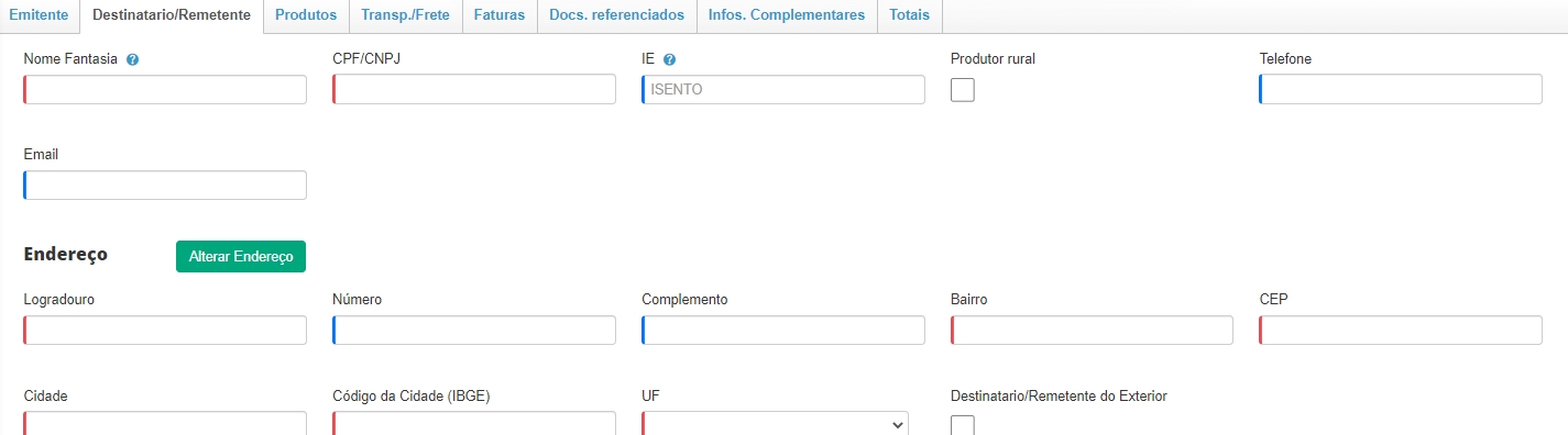 Caso o produtor rural não tenha emitido uma nota de compra para sua empresa, você não terá como preencher estes dados. Dessa forma, você deverá emitir a nota de venda para seu cliente, desmarcando a opção “Produtor Rural”, na aba Destinatário/Remetente. Ou seja, você emitirá uma NF-e padrão, como emite para os demais clientes que não são produtores rurais.