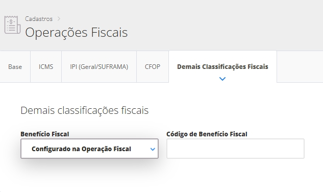 Esta aba será direcionada a configuração do beneficio fiscal, já que por sua vez, o mesmo produto pode possuir código de beneficio fiscal diferente para cada Estado que será emitido nota fiscal.
