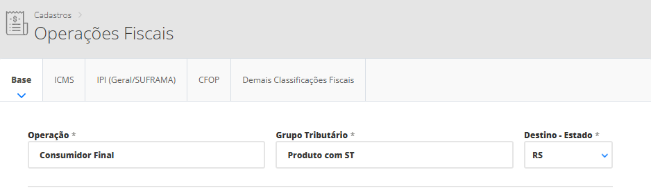 Depois disso, será necessário cadastrar mais uma operação fiscal para a empresa do Simples Nacional, porém com as tributações dos produtos com ICMS ST.