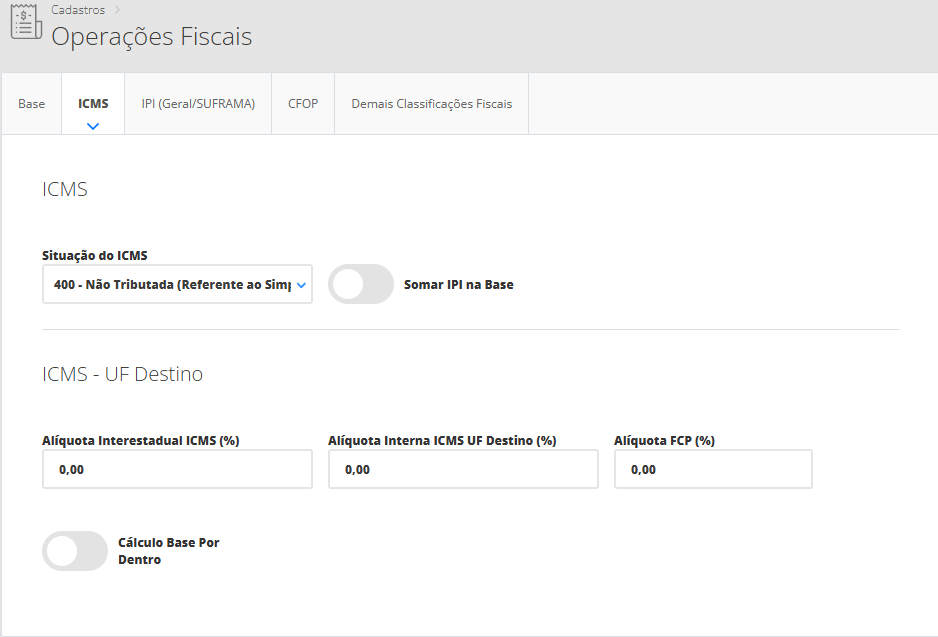- Criar as operações fiscais