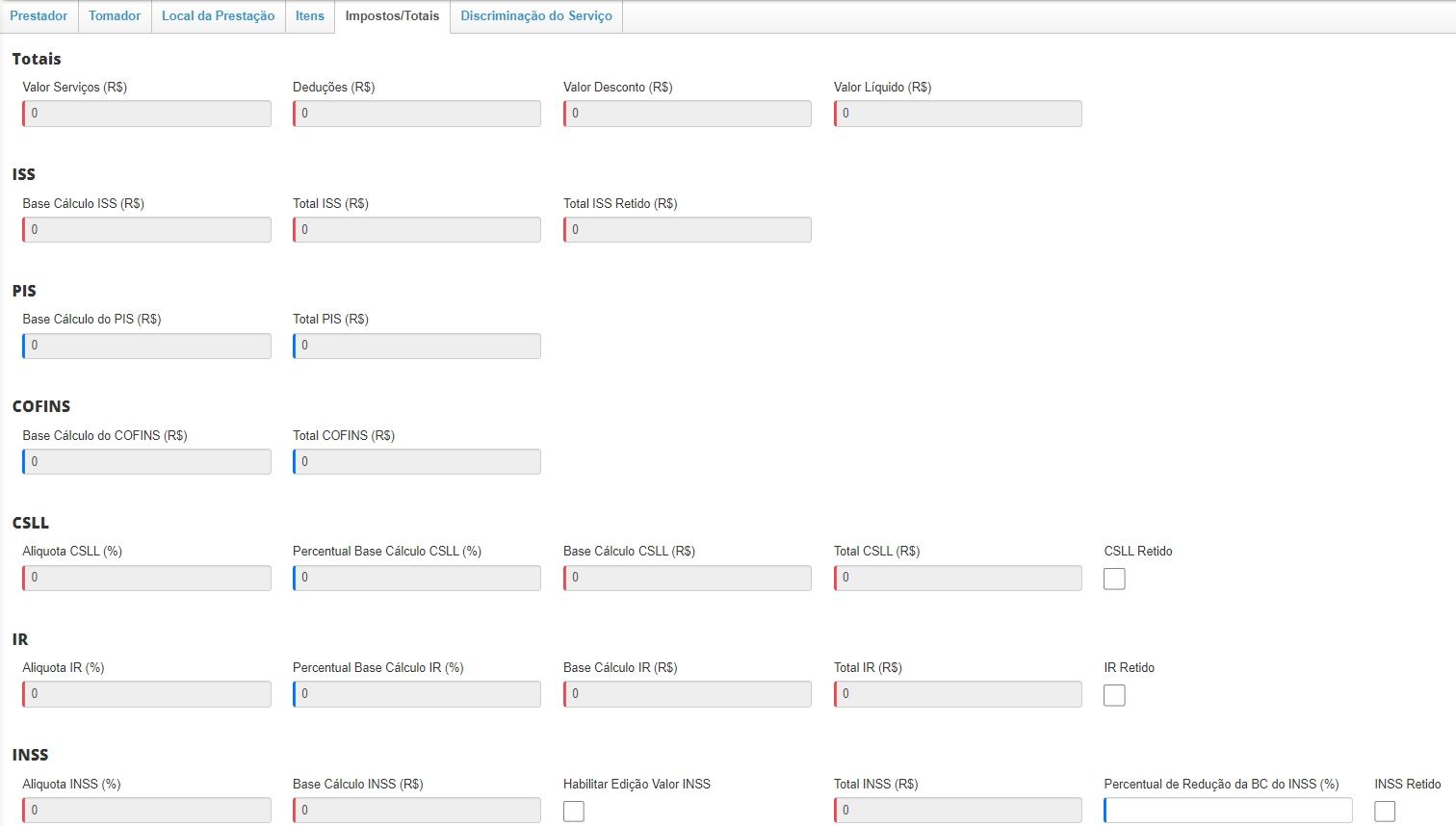 Assim, o sistema irá abrir a tela da emissão de NFS-e, onde você precisará preencher diversas informações.